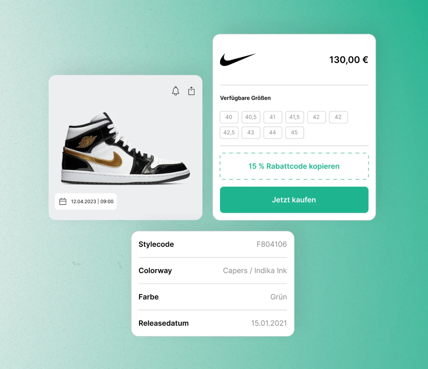 Release-Zeiten und Restocks in Echtzeit. Informationen kommen genau dann, wenn sie zählen.