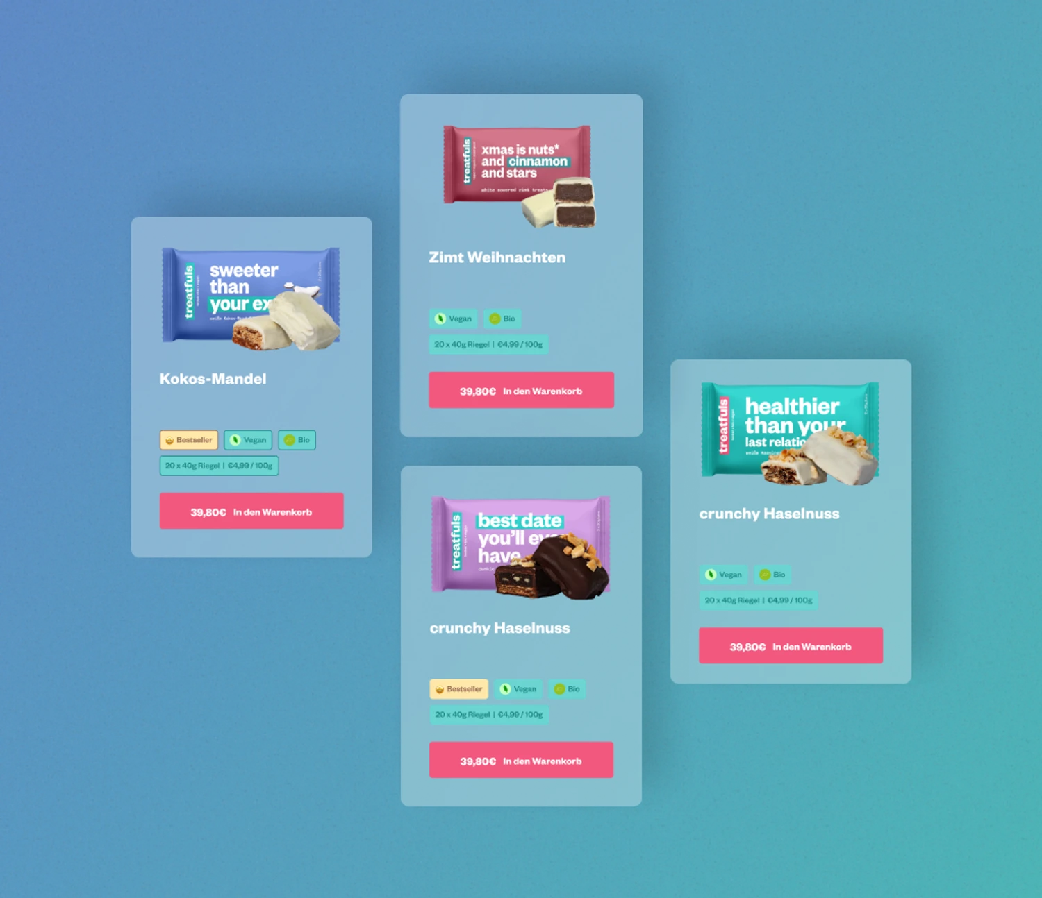 Gemeinsam mit Treatfuls ist eine digitale Plattform entstanden, die mehr ist als ein Onlineshop. Sie verbindet Marke, Produkt und Haltung zu einem stimmigen Gesamterlebnis. Klar, modern und nutzerzentriert.